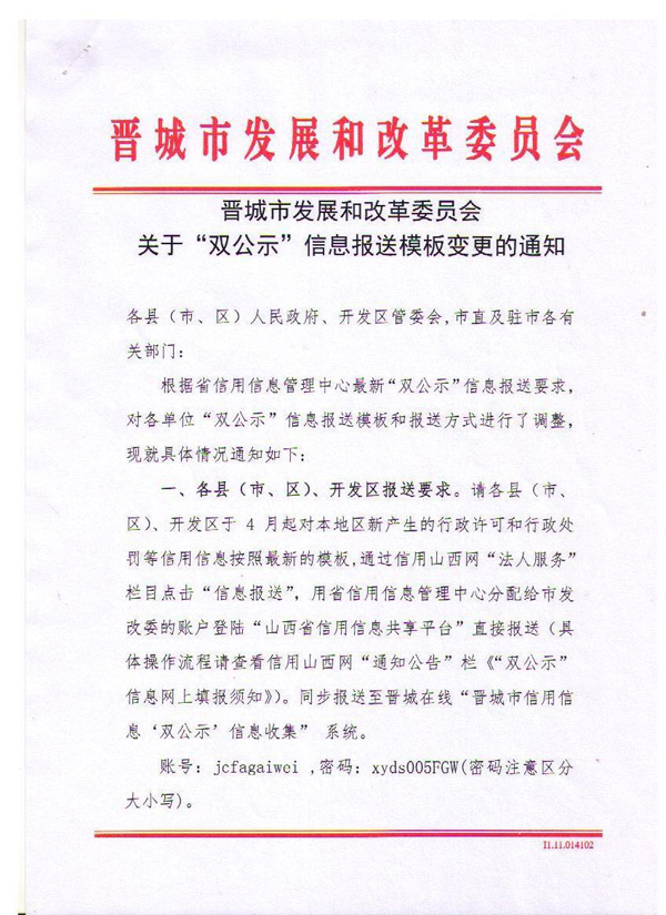 关于“双公示”信息报送模板变更的通知