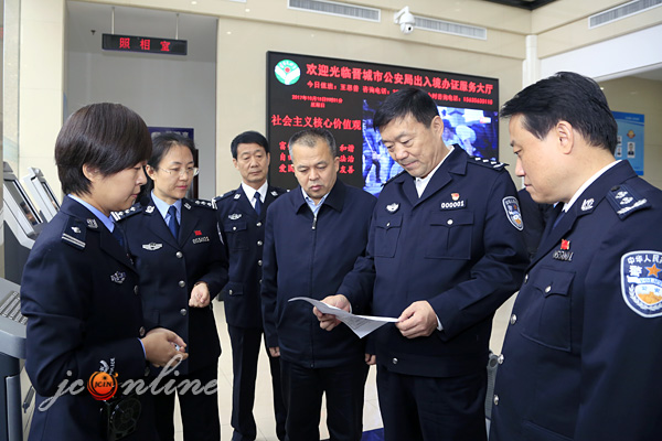 杨景海一行先后深入阳城县公安局、皇城相府景区派出所,阳城国际发电有限公司,晋焦高速公路丹河收费站,市公安局出入境管理大厅、反欺诈中心等地,认真翻阅了治安检查登记台账,详细了解辖区经济社会发展、社会治安秩序等情况,督导检查1+8行动各项措施落实情况。