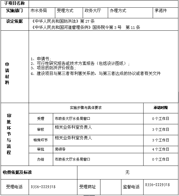 河道管理范围内工程建设项目、位置和界限(涉河工程建设方案)审批
