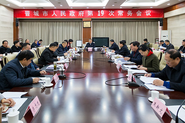 1月10日上午,市长刘锋主持召开市政府第19次常务会议。会议传达学习了习近平总书记“1.5”重要讲话精神;传达学习了2017年12月18日中央经济工作会议、12月27日全国扶贫开发工作会议、12月29日中央农村工作会议精神;传达学习了中办、国办《关于推进城市安全发展的意见》;传达学习了1月2日山西省委经济工作会议,1月3日骆惠宁书记在市委书记、党(工)委书记述职会上的讲话和全省企业家大会会议精神。会议研究了《关于强化实施创新驱动发展战略进一步推进大众创业万众创新深入发展的实施意见》、《主城区西北片区、东北片区、北石店区控制性详细规划局部街区调整方案》、《关于调整农村地区分布式光伏发电项目财政补贴意见》;听取了关于中央环境保护督察整改任务完成情况的报告、沁和能源所持兰花集团股权变更的情况汇报。