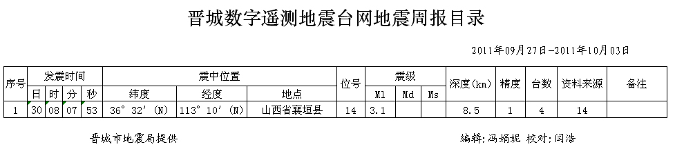 晋城地震周报(03.30-04.05)  2010-04-06 15:53:31