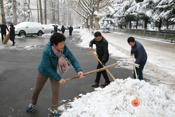 忽如一夜春风来,千树万树梨花开,经过一夜的沉积,厚厚的大雪使整个晋城银装素裹,给人们带来了美丽的风景,但同时也给人们的出行带来了诸多不便。为了畅通交通,方便行人出行,1月4日下午,市农委组织干部职工开展除雪活动。