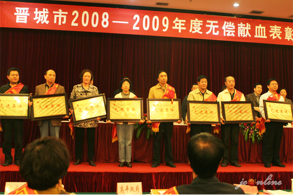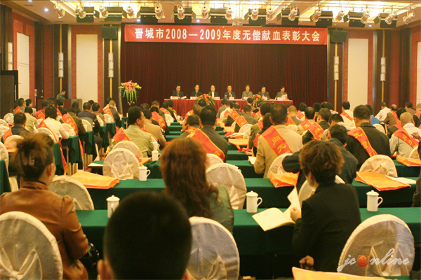 10月19日上午,晋城市2008-2009无偿献血暨血液管理表彰大会在泽州大酒店隆重召开。副市长李章宏、市政协副主席陈改玲出席会议并为获奖代表颁奖。