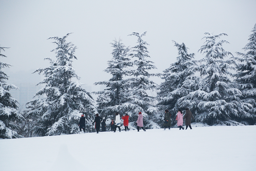 市民走出家门,享受这美丽雪景带来的快乐。(摄影:田飞)