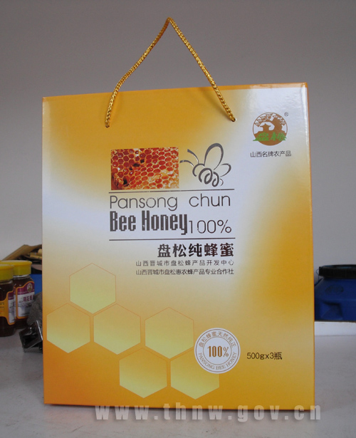盘松惠农蜂产品专业合作社立足于21世纪人们对天然、无公害、有机食品的青睐;能食疗不药疗、减少副作用;吃健康、吃美容、吃长寿的健康理念。积极开展科技创新,利用蜂产品与农副产品合成,研制开发多种功能性食品。目前上市的蜜蜂系列产品,彻底铲除了药物残留、抗生素超标,源头上保证了原材料的绿色质量,为“盘松”品牌战略奠定了基础,盘松系列蜂产品填补了国家市场空白,取得了丰富市场、农民增收的效果。