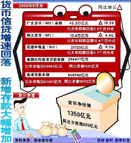 前三季度我国经济运行情况]货币信贷增速回落 新增存款大幅增加 新华社图表