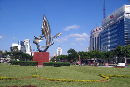 核心为雕塑作品。立于市政府综合办公楼前方。造型为玉兰花捧着圆果实。基座为长方体,质地是不锈钢材料。1993年4月1日开工,6月30日竣工。寓意为改革开放结硕果。
