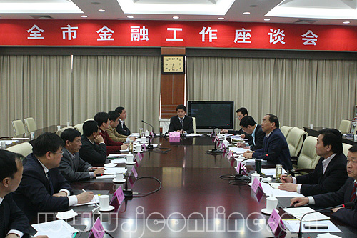 (本网讯 实习记者韩艳帅报道)4月9日,市政府召开座谈会,听取我市2007年金融运行情况汇报。
